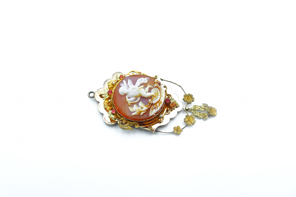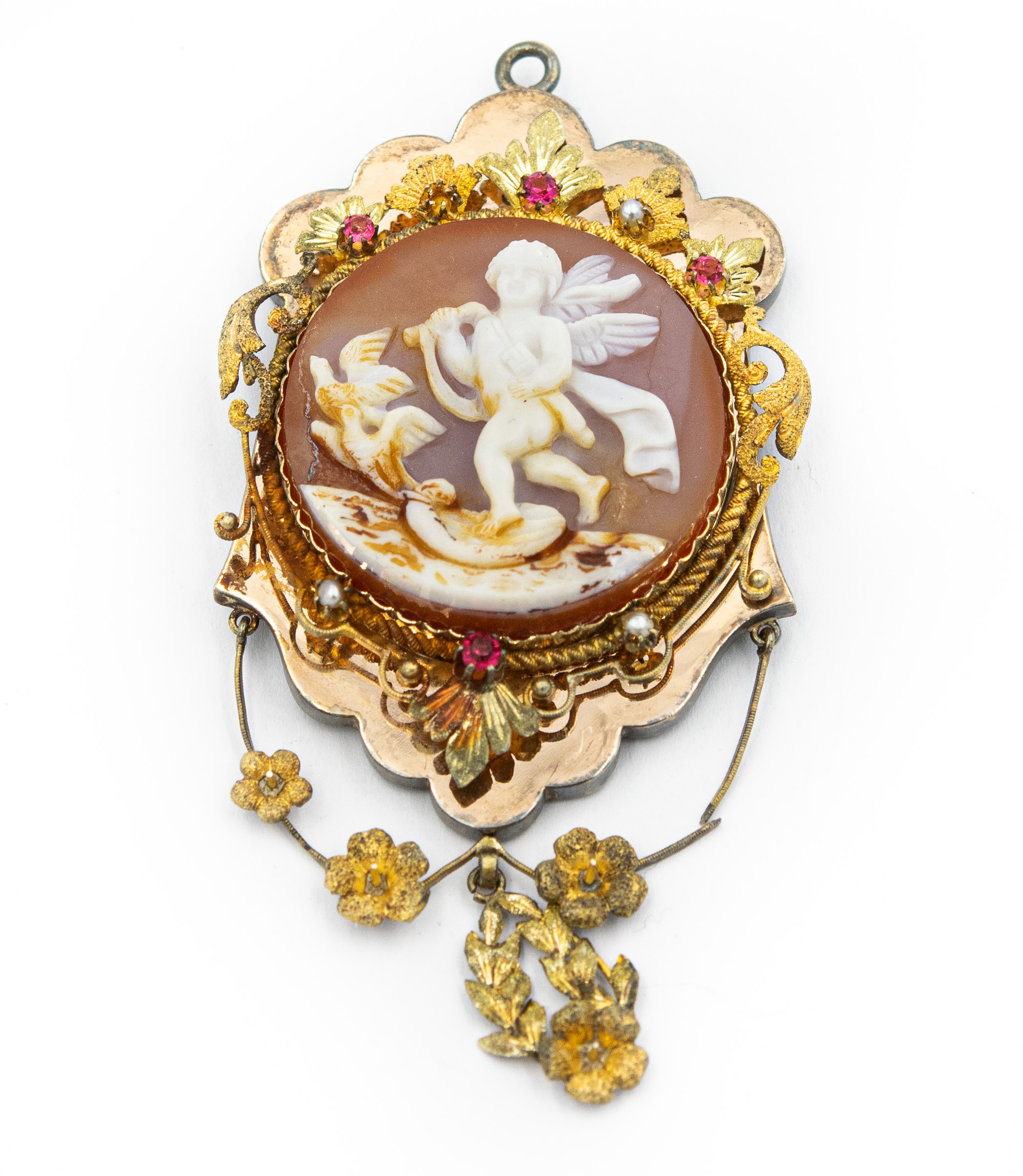 Victorian Yellow and Rose Gold Cameo Pendant; 14k yellow and rose gold; 12.2dwt/18.97g; 1 3/4"