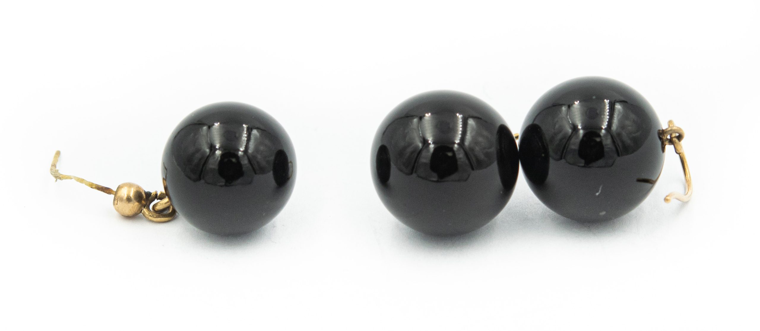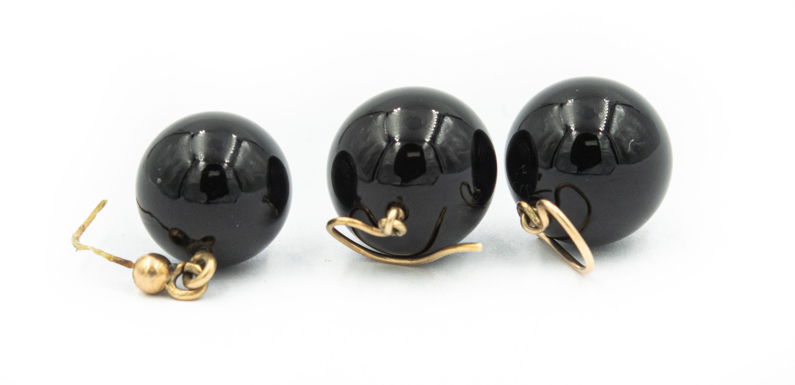 Victorian Yellow Gold and Onyx Earrings and Pendant Suite