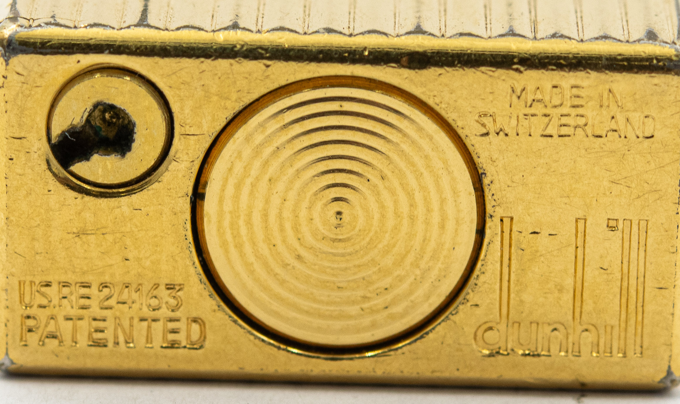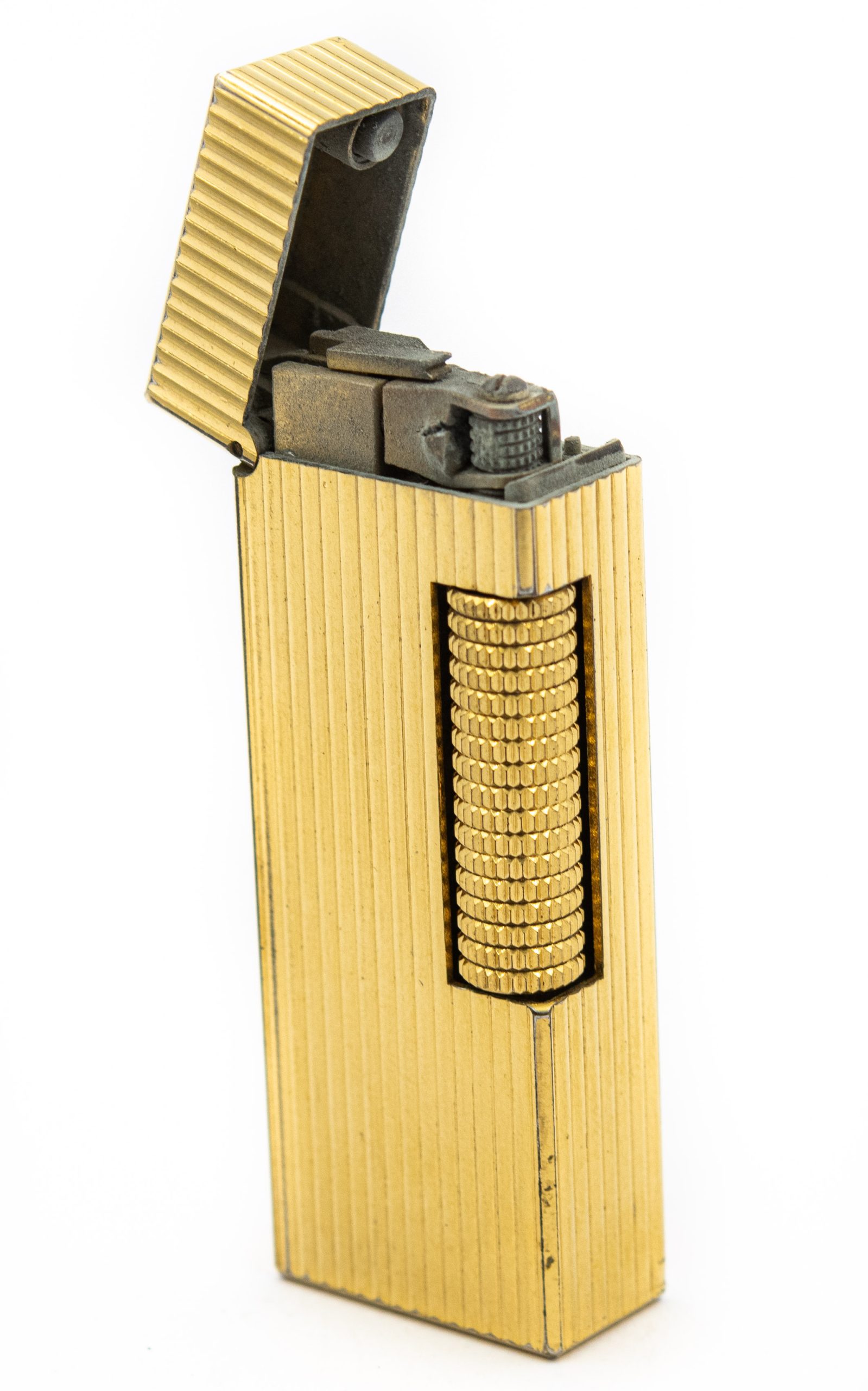 Vintage 1970's Gold Filled Lighter By Dunhill. The lighter features a fluted rectangular design that measures 2 3/4" in length. Please note the light is in non working condition.
