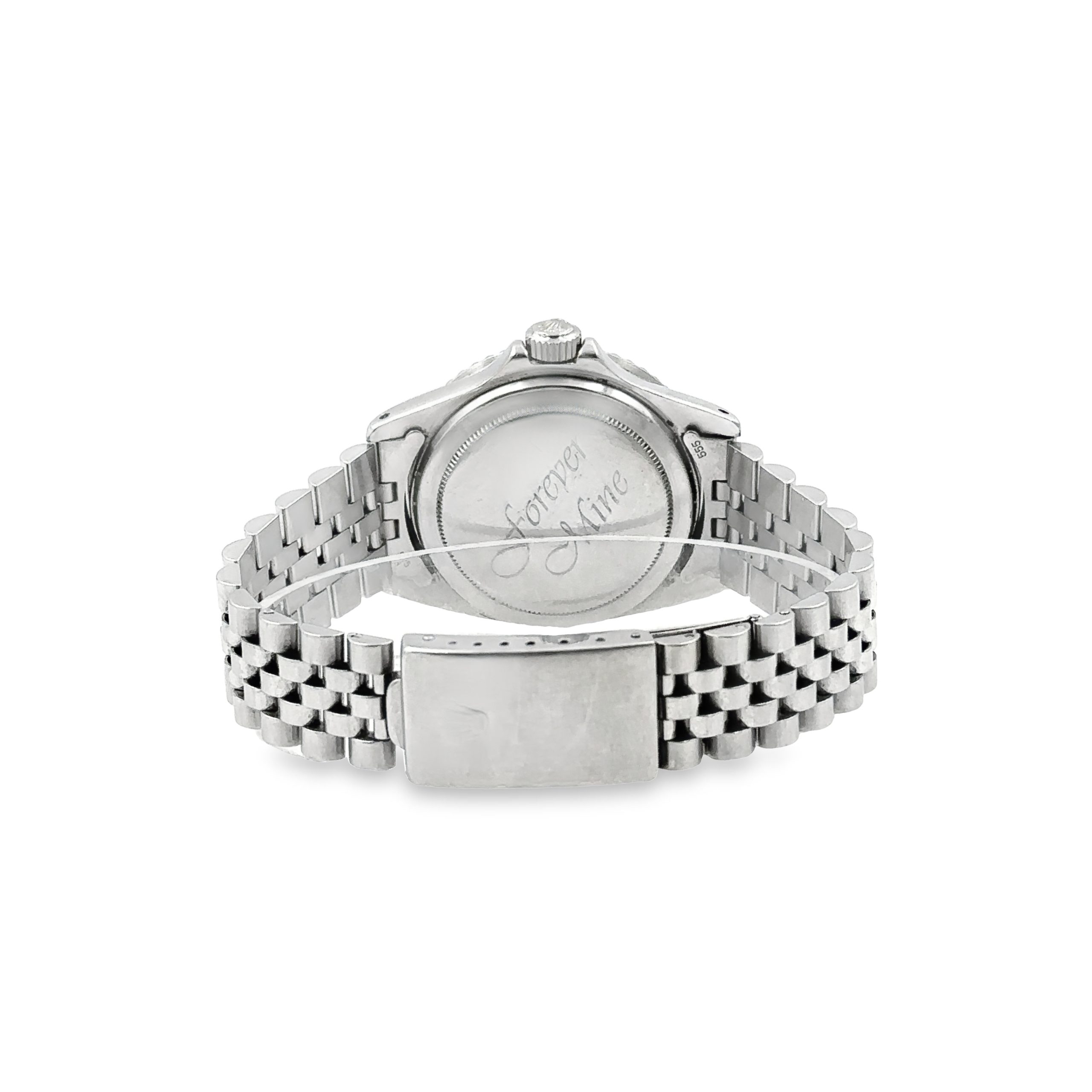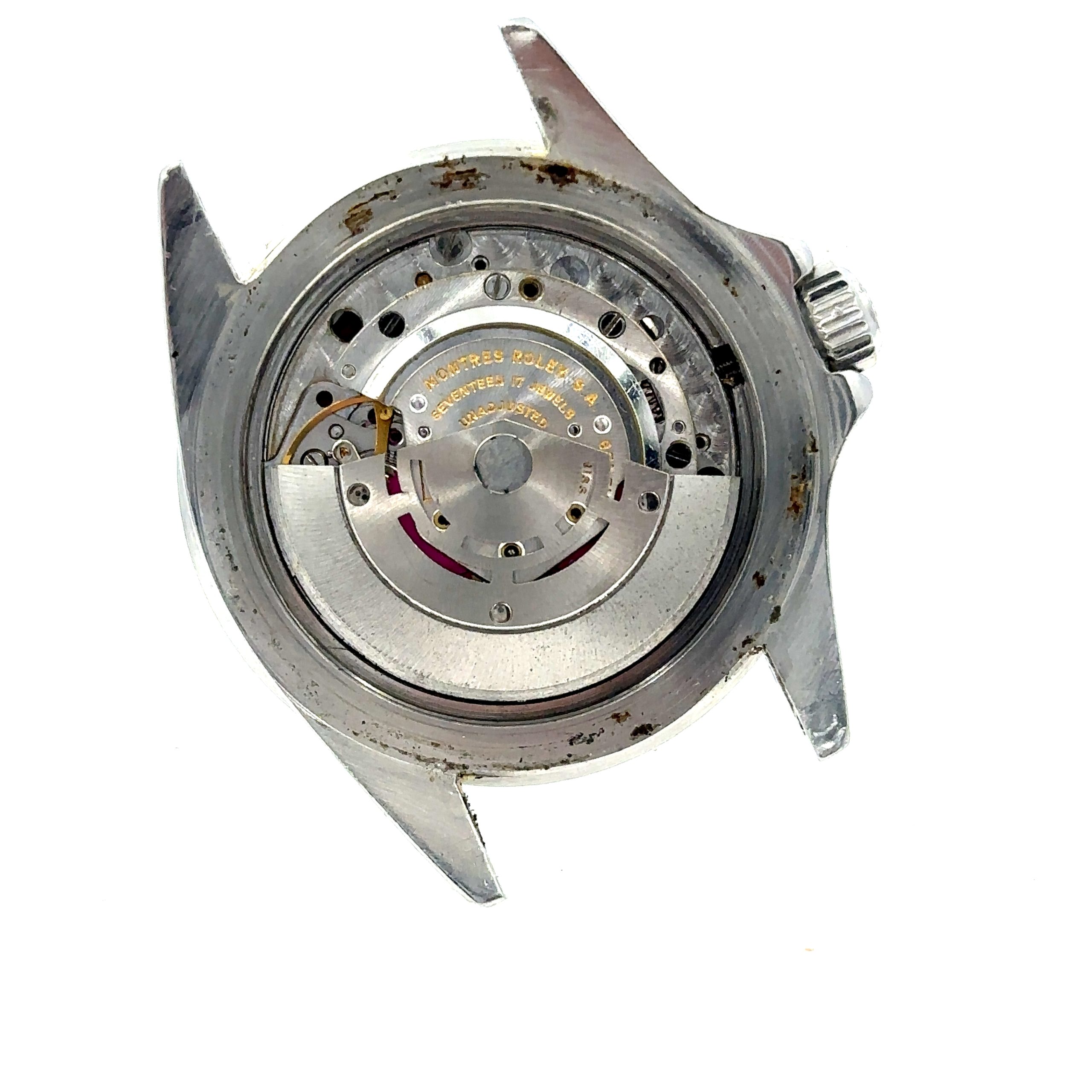 Vintage Steel Rolex Submariner Ref 5513/12 Wristwatch with Black Black Matte Non Serfi Dial Circa 1968. This very fine and rare men's circular wristwatch by Rolex, Submariner Model Ref 5512/5513 in a three piece steel case measures 47.60mm x 43.00mm including the crown (Ref 5512/1,829,360). The back of the case is stamped "5513 IV.67". The watch has an original matte black non serif dial with luminous round, triangular and flat baton indexes and matching luminous "skeleton" hands. The dial is nice and is in overall very good original condition. The watch has a high grade Cal 1520 rhodium plated 17 jewel movement that is in non-running condition. It is attached to a steel Rolex Jubilee band circa early 2000's that measures 8 1/4" in length(555B 62510H).