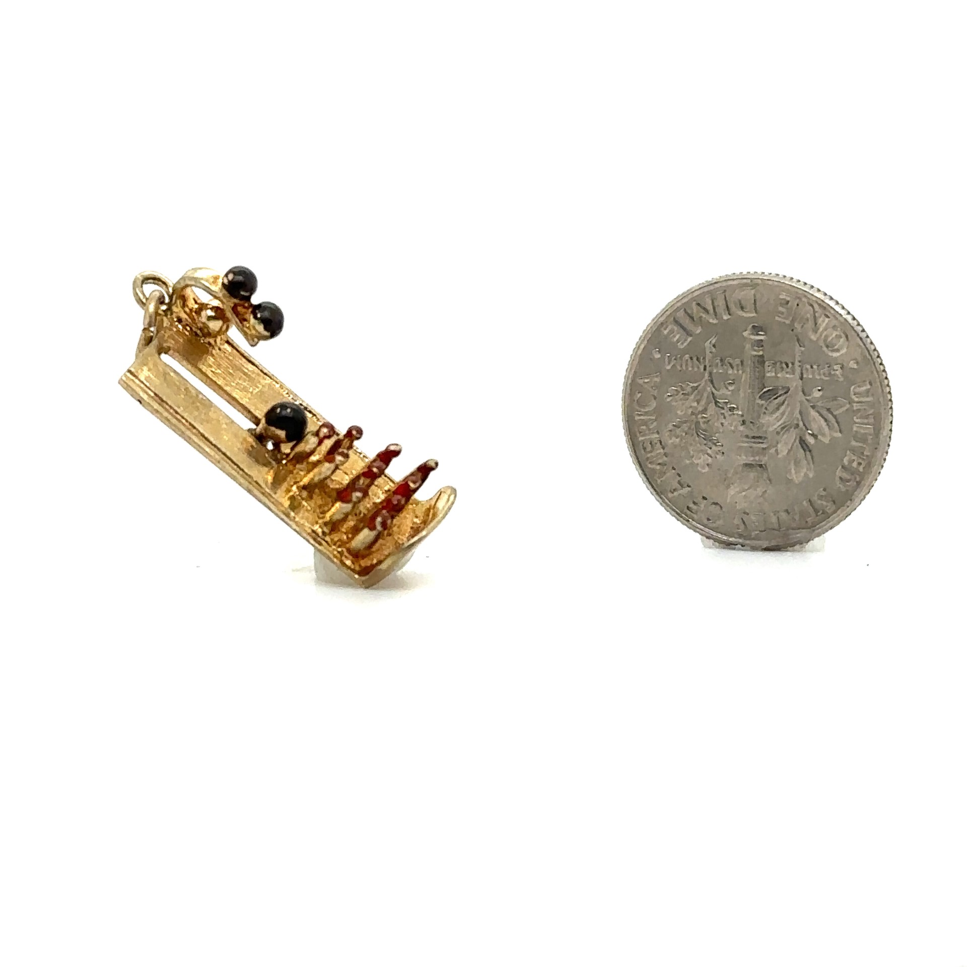 Vintage Yellow Gold Bowling Alley Movable Charm
