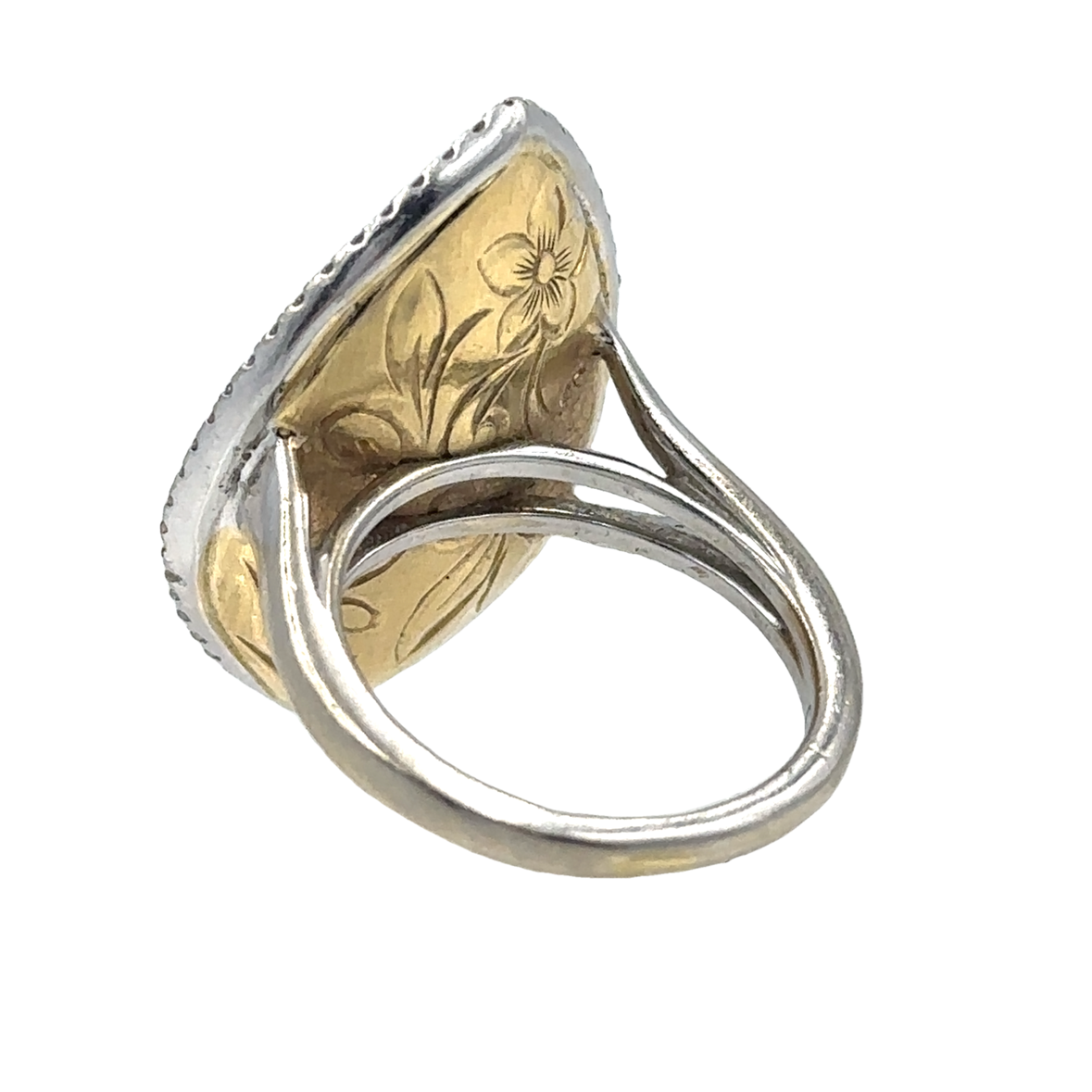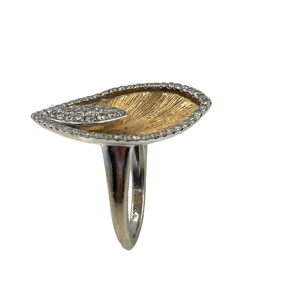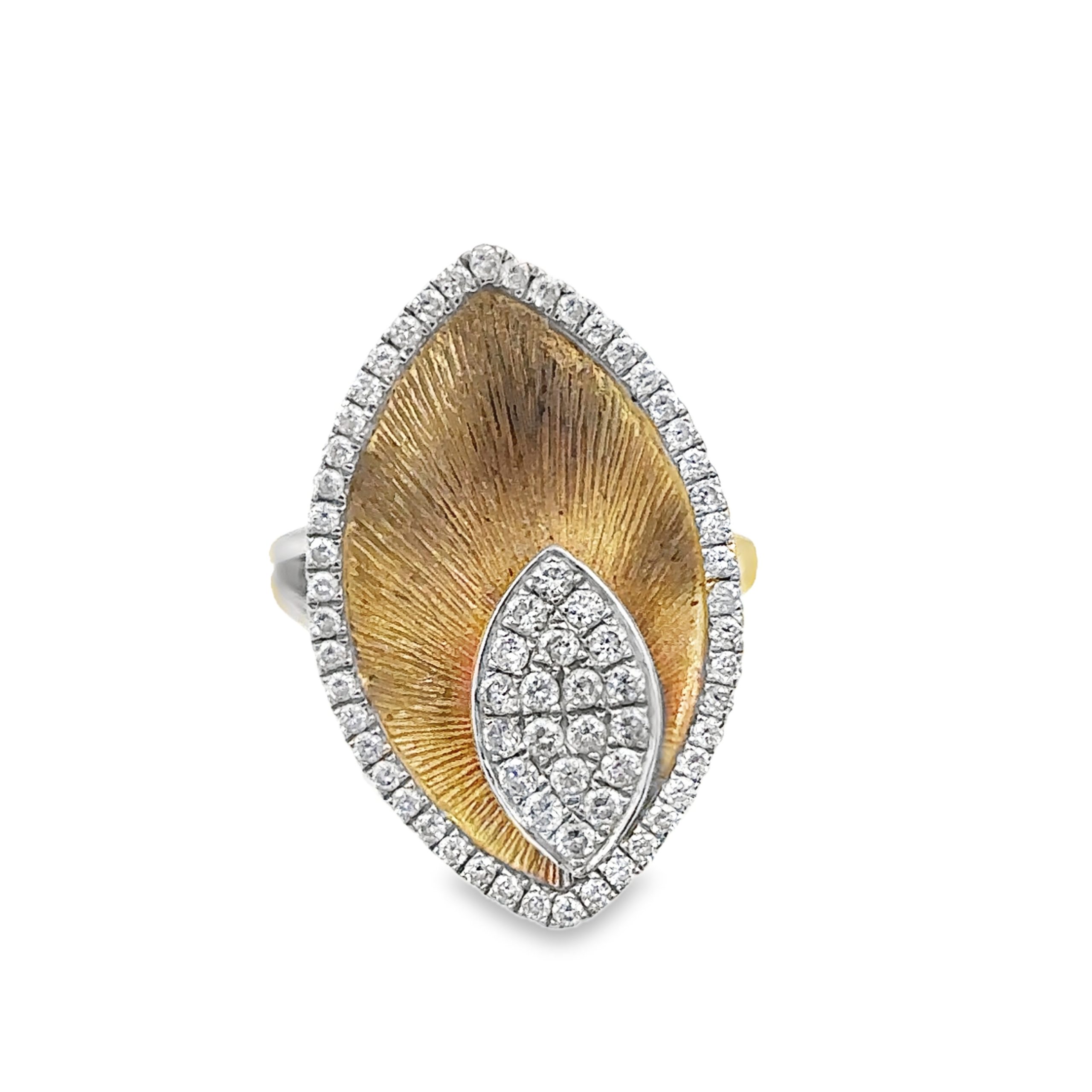 18K Gold Leaf Diamond Ring By Gabriel & Co, framed with 66 diamonds weighing .57cts, 4.40Dwt/6.70Gr., ring size 5.