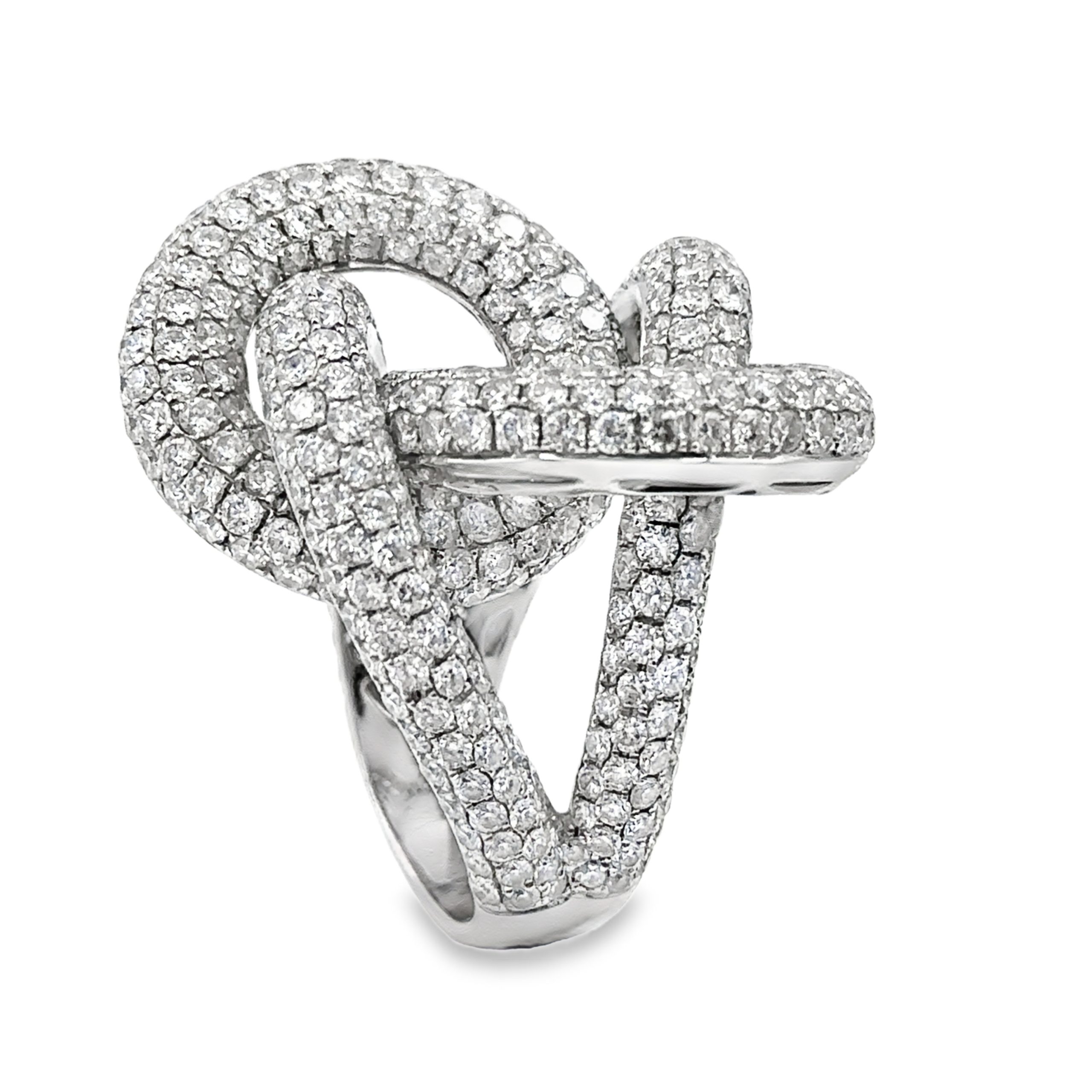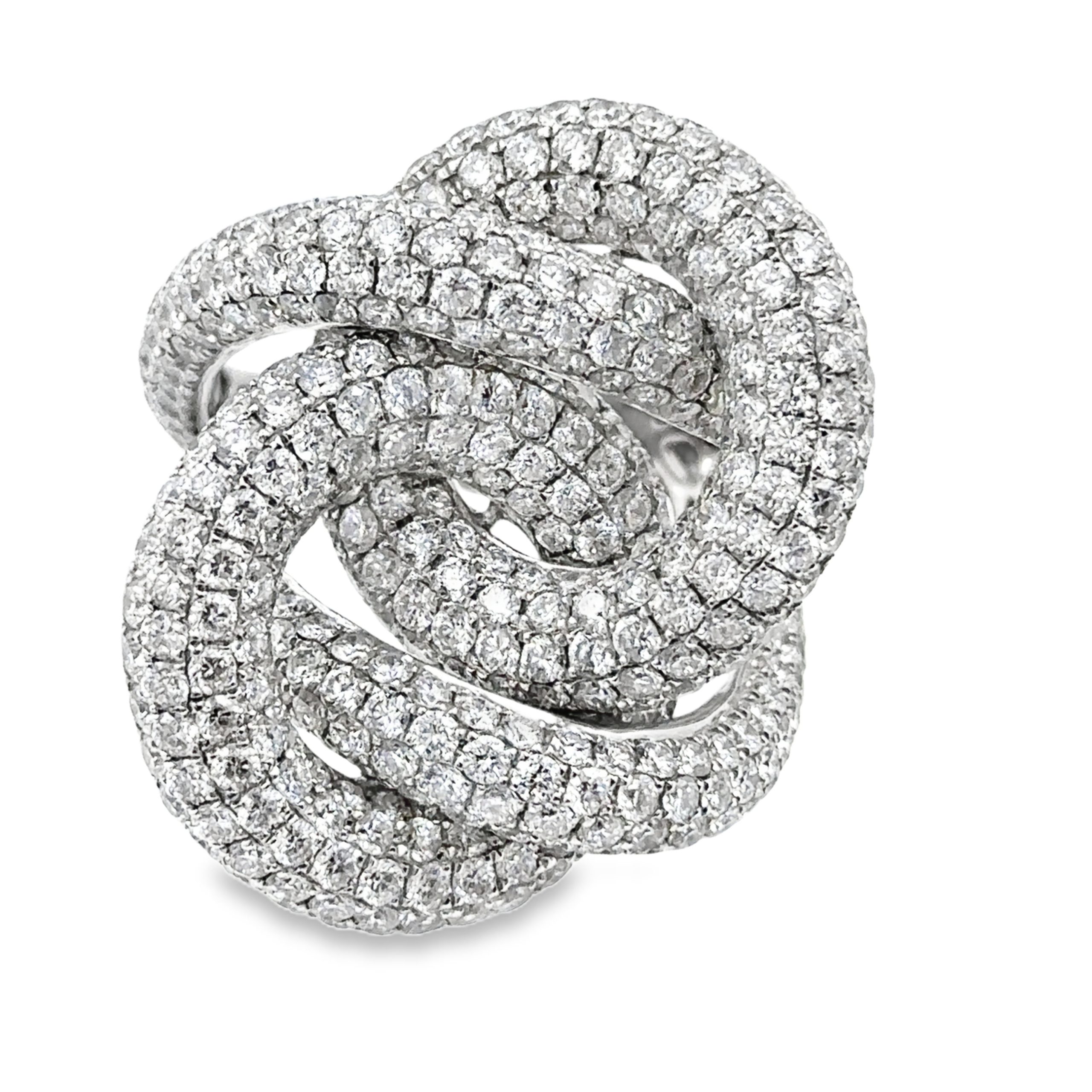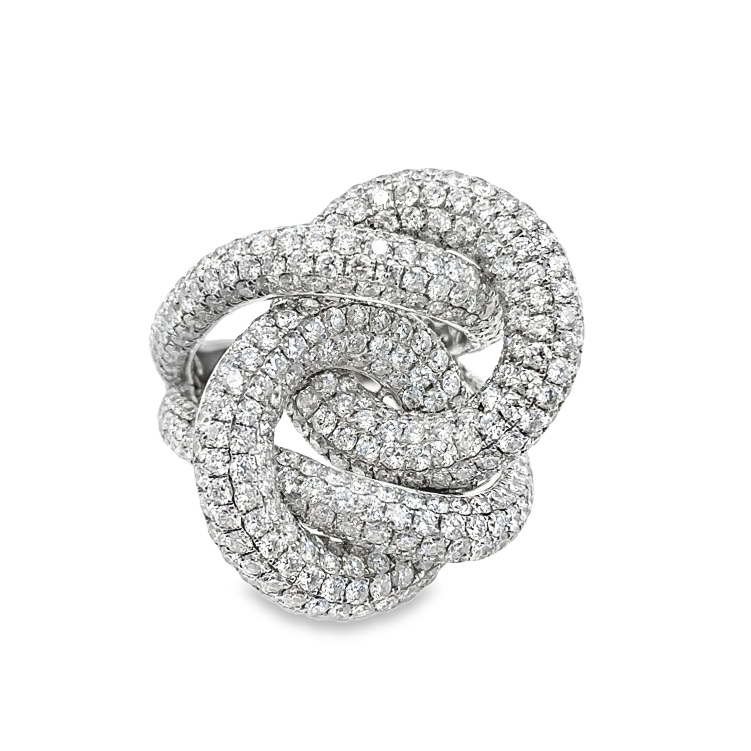 18K White Gold Braided Diamond Link Band, micro pavé set with 520 diamonds weighing a total of 13.00cts. The band weighs 17.50 grams (11.30 dwt) and is a size 7 1/2