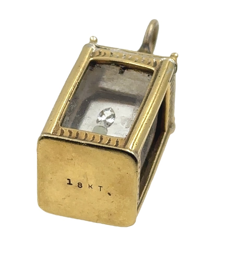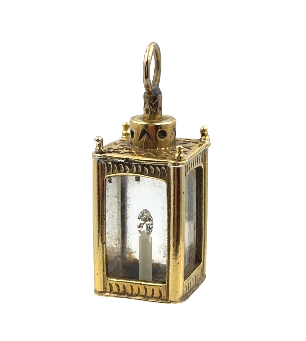 18K Yellow Gold Diamond Light Lantern Charm/Pendant.