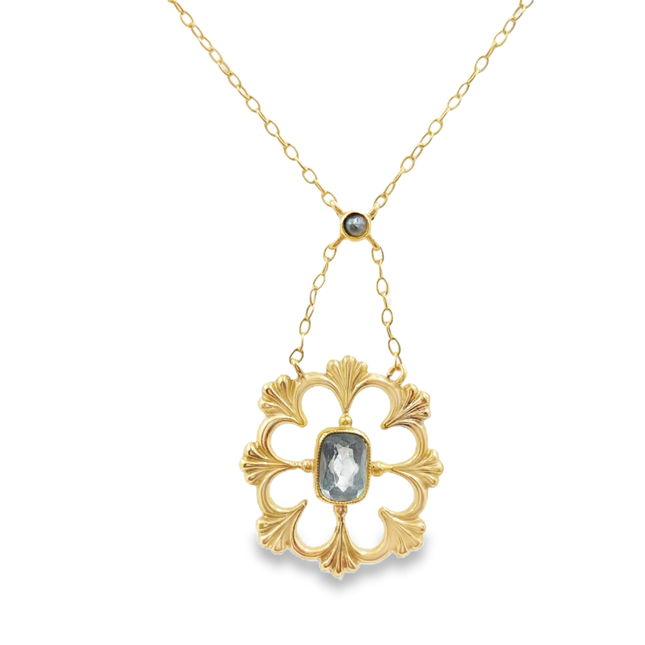 18K yellow gold Aquamarine necklace, hallmarked by Garrard & Co